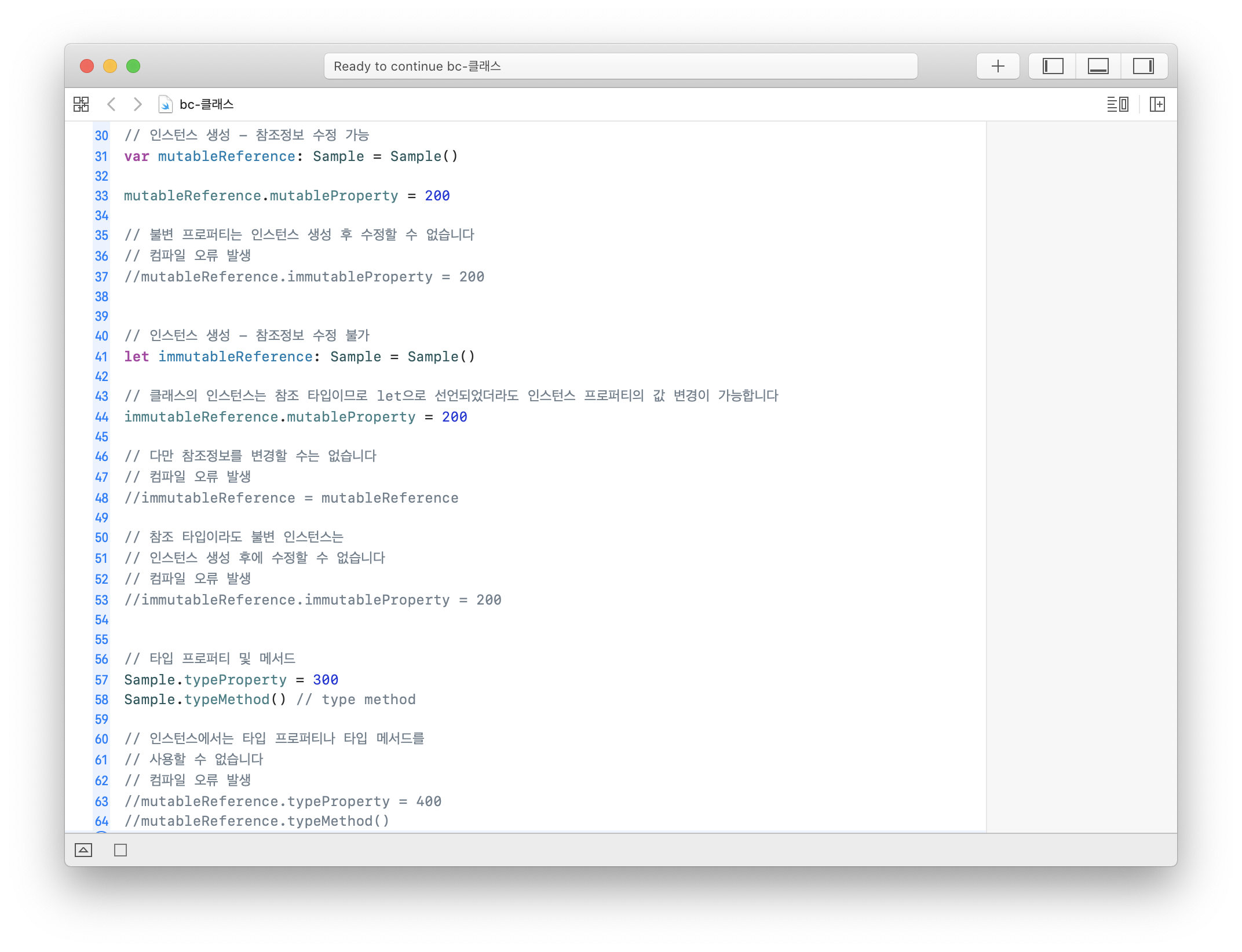 ν΄λμ€μ μΈμ€ν΄μ€λ μ°Έμ‘° νμ μ΄λ―λ‘ letμΌλ‘ μ μΈλλλΌλ μΈμ€ν΄μ€ νλ‘νΌν°μ κ° λ³κ²½μ΄ κ°λ₯νλ€.