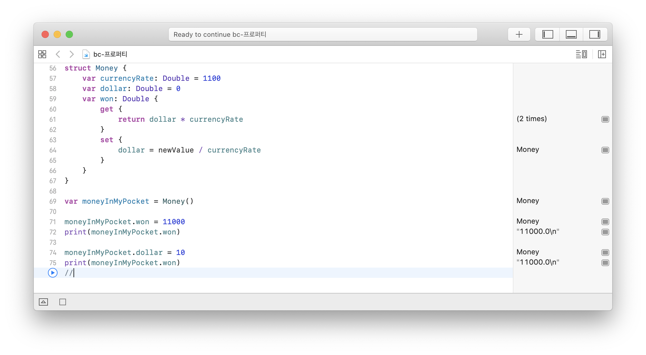 - ์ฝ๊ธฐ, ์ฐ๊ธฐ ๋ชจ๋ ๊ฐ๋ฅํ๊ฒ ํ๋ ค๋ฉด get ๋ธ๋ญ๊ณผ set๋ธ๋ญ์ ๋ชจ๋ ๊ตฌํํด์ฃผ๋ฉด ๋๋ค.