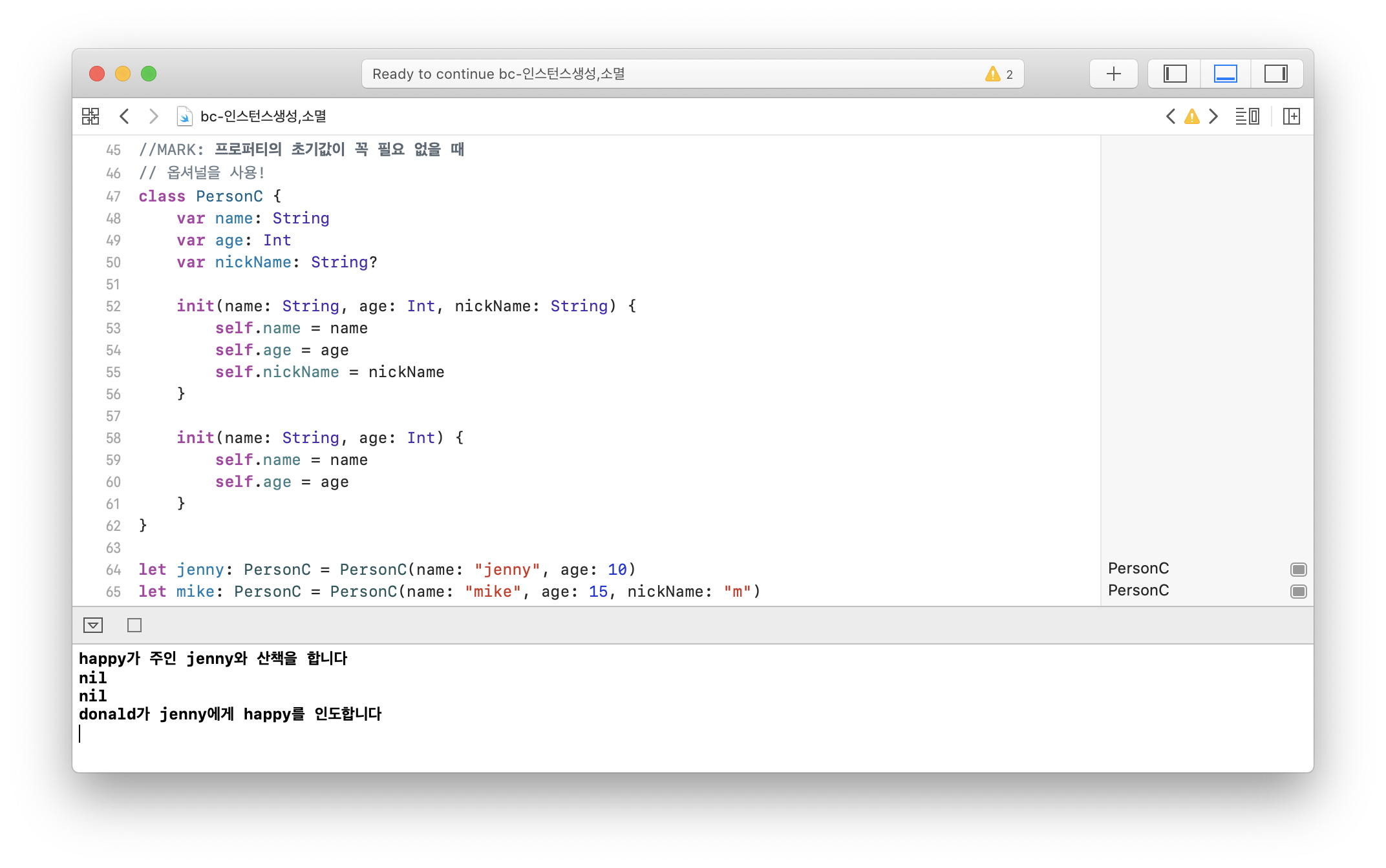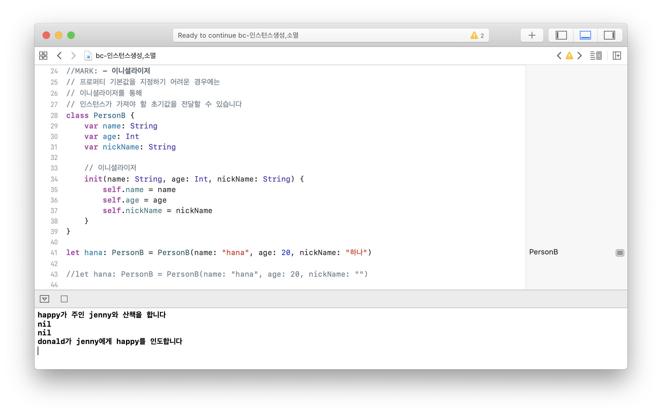 - class λ΄λΆμ initμ μ¬μ©ν λλ convenience ν€μλ μ¬μ©