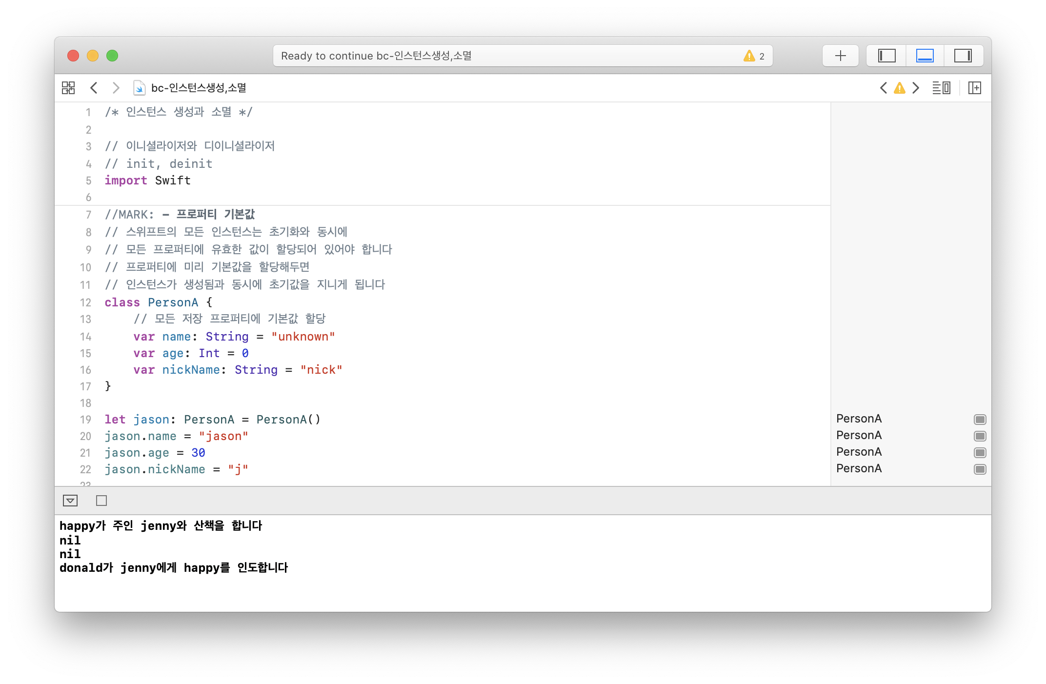 - μΈμ€ν΄μ€κ° λ©λͺ¨λ¦¬μμ ν΄μ λλ μμ μ ARC(Automatic Reference Counting) μ κ·μΉμ λ°λΌ κ²°μ λλ€.