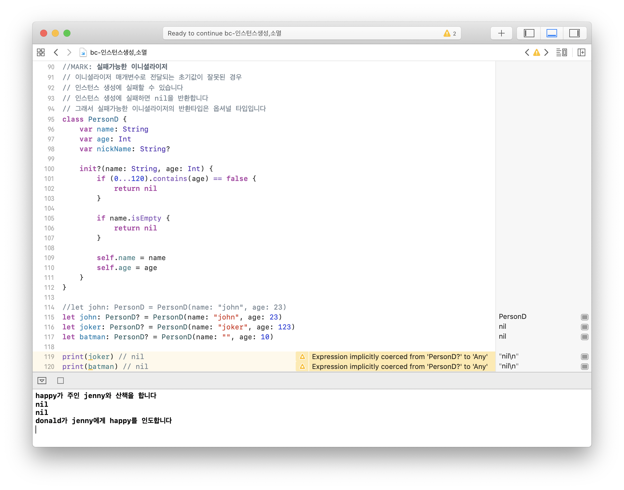 - μΈμ€ν΄μ€ μμ±μ μ€ν¨νλ©΄ nilμ λ°ννλ€.