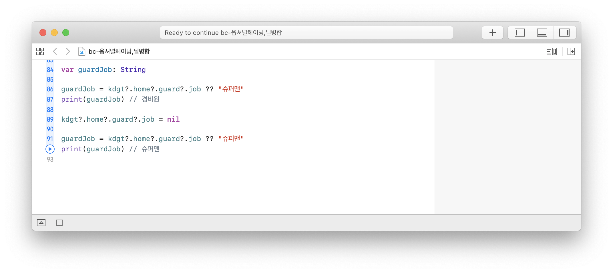 - μ΅μ λ κ°μ΄ nilμΌ κ²½μ°, μ°μΈ‘μ κ°μ λ°ννλ€.