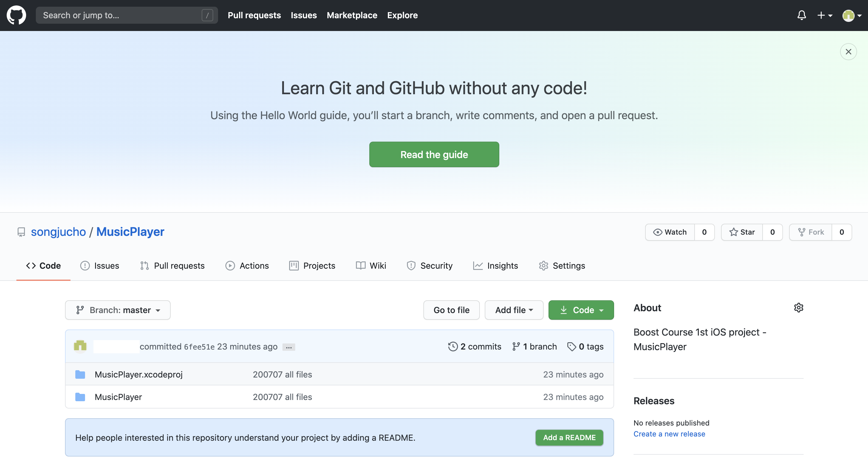 부스트코스로 진행하고 있는 iOS 첫 프로젝트를 github에 연결해보겠다.