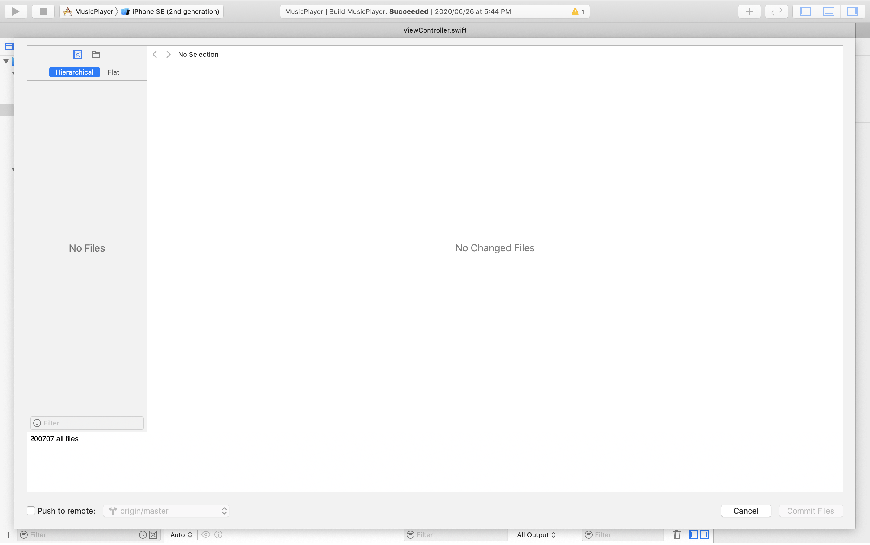 Source Control - commit 을 통해 커밋할 파일과 로그를 작성하고 Commit Files를 누른다.