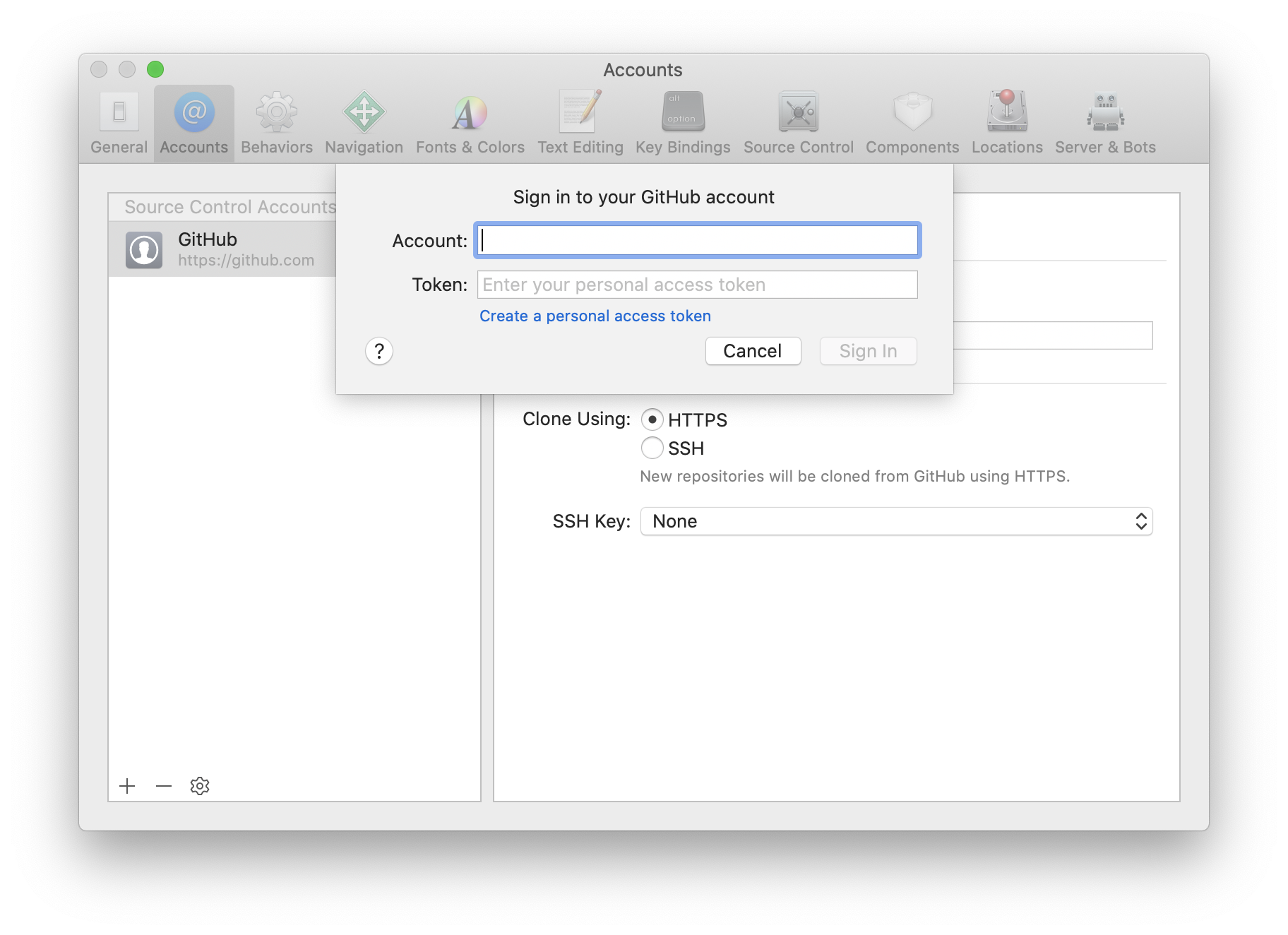 Xcode - preferences - Accounts 에서 왼쪽 아래 + 버튼을 누른다.